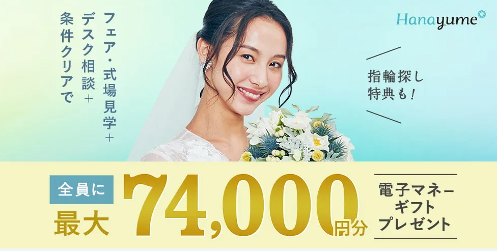 結婚式の予定がある人は全員ハナヨメのキャンペーンを利用したほうがいいです。式場見学だけで数万円の電子マネーが貰えます。